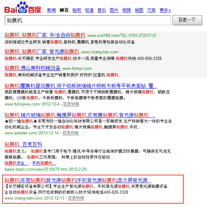 【優(yōu)化】長天精密設(shè)備:貼膜機百度第2,東莞貼膜機百度第1